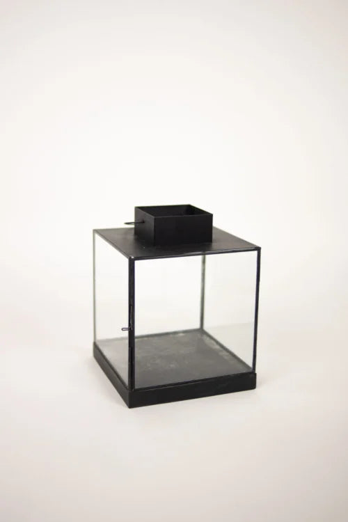Firkantet lanterne, der giver et moderne og trendy look – perfekt som en dekorativ detalje på et bord eller i vindueskarmen.