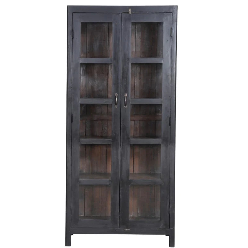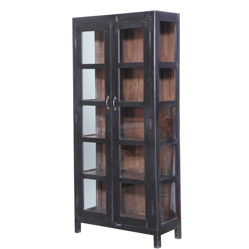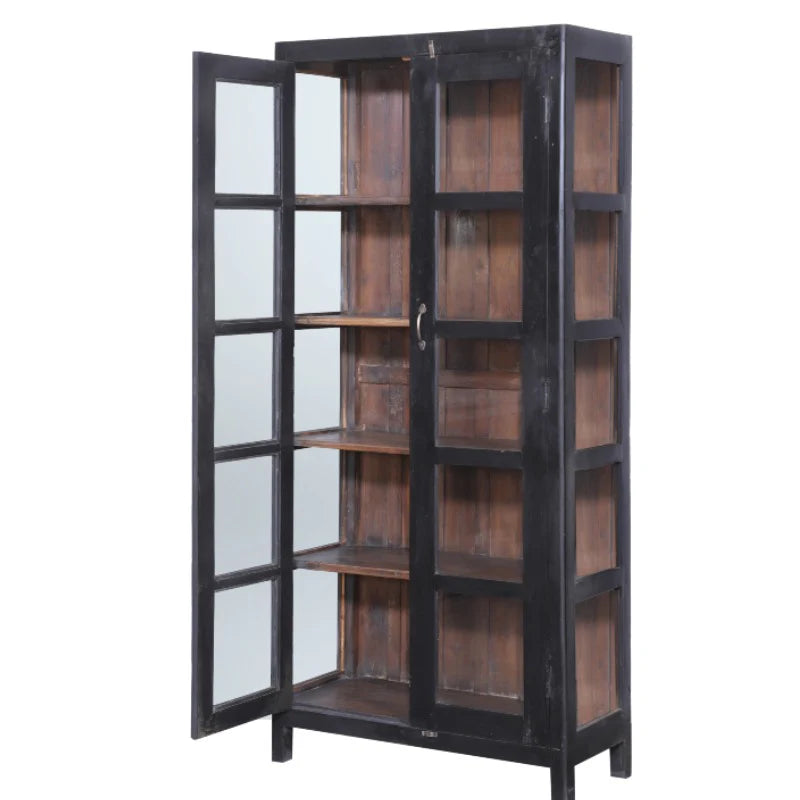 Dette fine vitrineskab med glas låger er et gammelt unika skab, der er restaureret. Skabet har fem hylder, hvis man tæller bunden med. Skabet er som skabt til opbevaring af alt fra porcelæn til linned, bøger eller dit hjemmekontor.