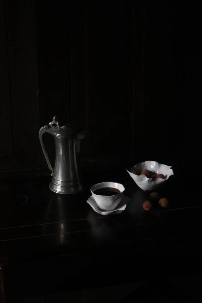 Claire koppen med underkop er både funktionel og dekorativ – et lille stykke luksus, der gør din kaffepause ekstra hyggelig.