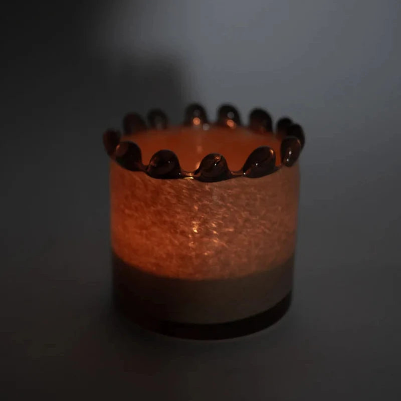 En luksuriøs glaslanterne med dekorative prikker langs kanten, der giver en legende og munter fornemmelse.