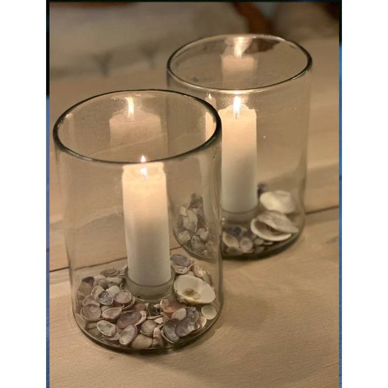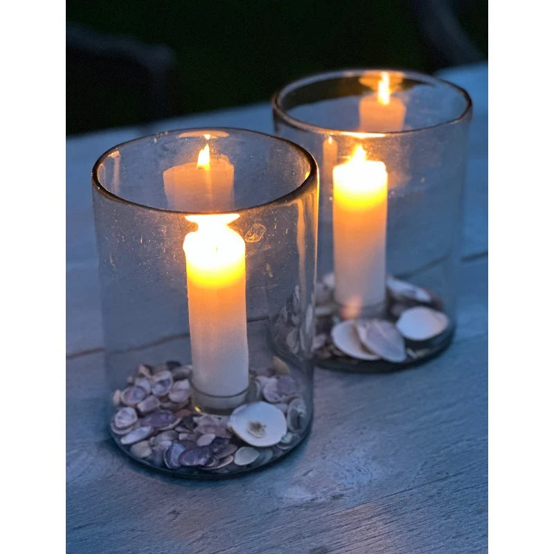 Cylinder glas lysestage med holder til et 4 cm lys i midten. Kan også benyttes som en glasvase til en buket blomster eller lidt mere enkle grene.
