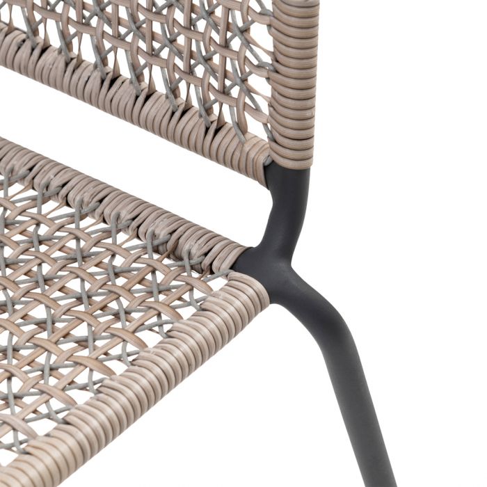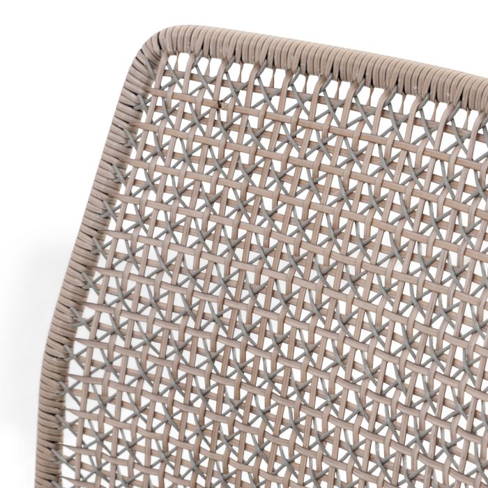 Denne udendørs spisestol er håndflettet i et smukt dobbeltkrydsmønster.