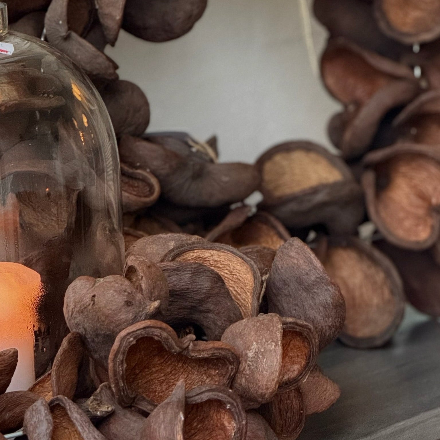 Perfekt at kombinere med en glasvase eller lanterne i midten med et lys for en stemningsfuld effekt - men den kan også sagtens bruges alene som dekorativt element.