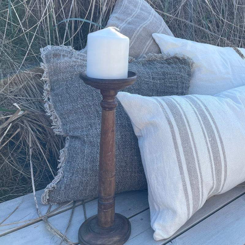 Rustikke træ lysestage, lavet af genbrugs træ fra Indien. Den er så fin med et bloklys
